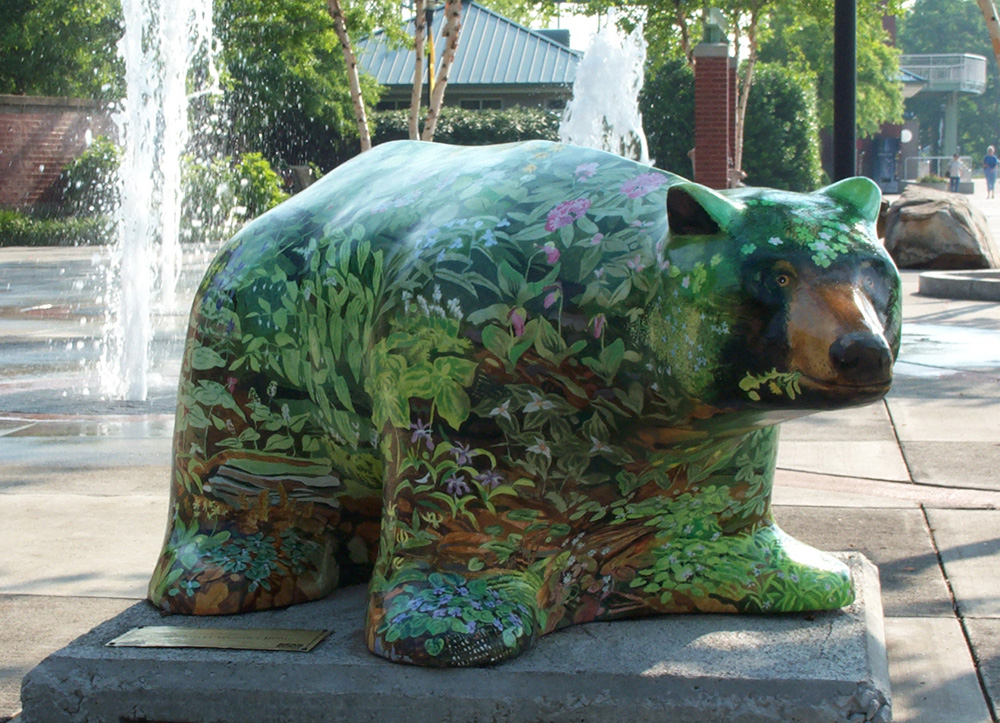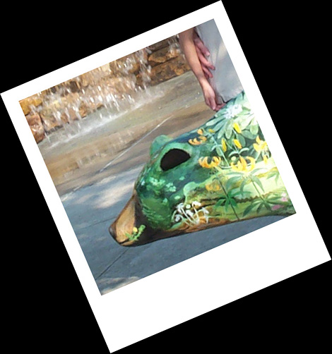 There we found another bear in front of the water fall and surrounded by fountains.