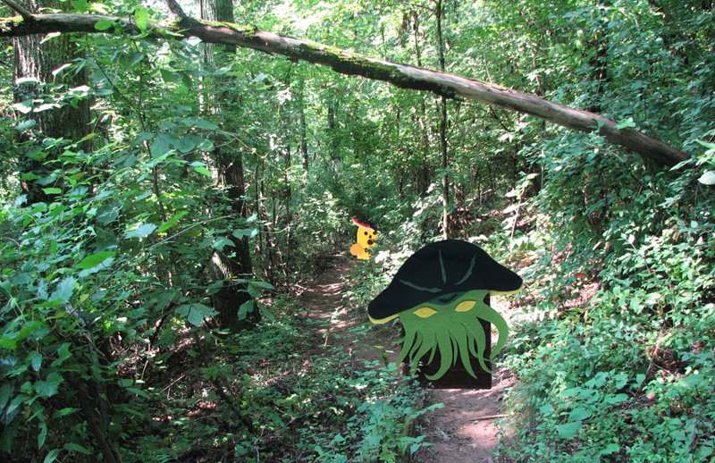 Moving as silently as a mushroom, Poison Pie stole into the lands under Cthulhushroom's sway and spied upon the alien invader. He quickly decided this foe was too much for a single man of the mushroom people to tackle alone.