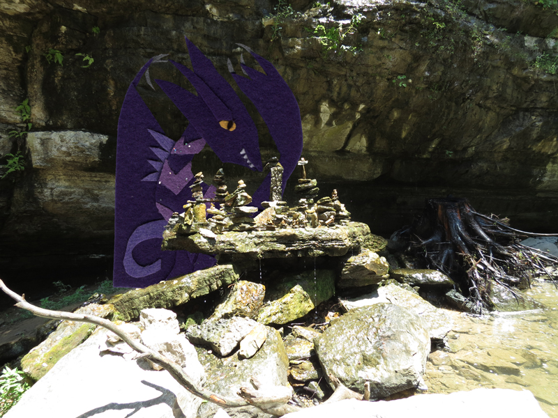 The purple dragon has never claimed to be a Greater Entity, to be revered on the basis of some intrinsic, lofty status. Its merits rest rather on the demonstrated achievements of its illustrious past. For example, one evening a wicked sorceress traveling through Faerie was waylaid by the Purple Dragon. She issued a challenge to the dragon: if it could not answer her riddle then it must allow her to pass unmolested. "Recite to me a sentence," said the sorceress with a cackle, "containing words that rhyme with orange, monster and purple!" The purple dragon ruffled its gargantuan wings and tapped the ground with its razor-sharp talons before replying in a voice that sent ripples through the atmosphere, "The borange honster smurpled me." Then the purple dragon ate the wicked sorceress in a single gulp.