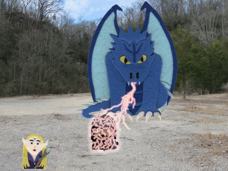 The dragon lunged after Lynnburger and would have torn her in two had Bworf not charged between them. For his trouble the dragon spat a bolt of crackling electricity at the dwarf.