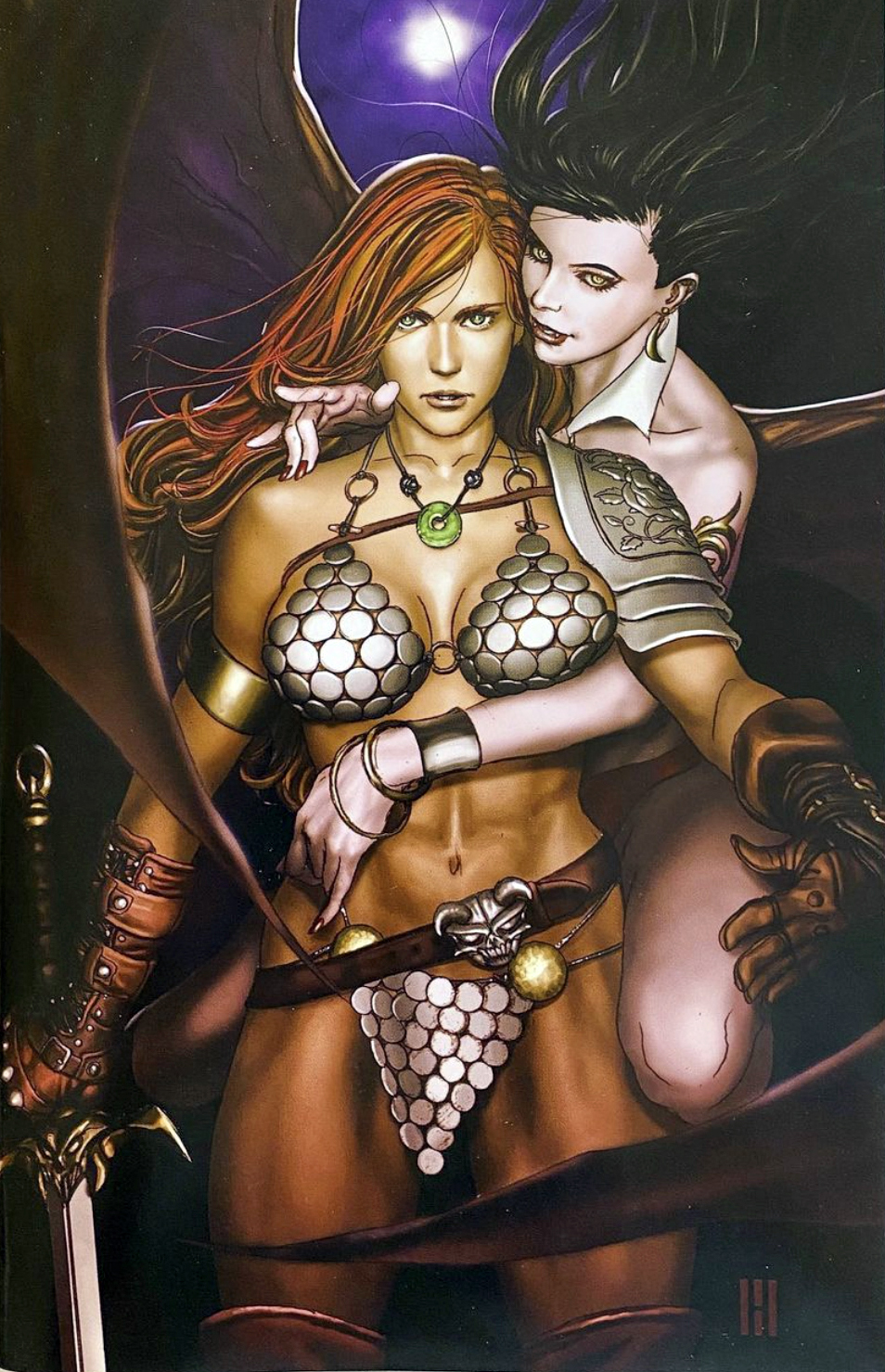 - commentary: Of all the variant covers to the eighty issues of Red Sonja: She-Devil with a Sword (2005), to our knowledge we are missing just two with unique art. (By this we mean to exclude virgin variants or tinted variants or sketch variants, etc.) This cover by Hughes is the first of them. We see it for sale periodically, at a price point that is unappealing to us.