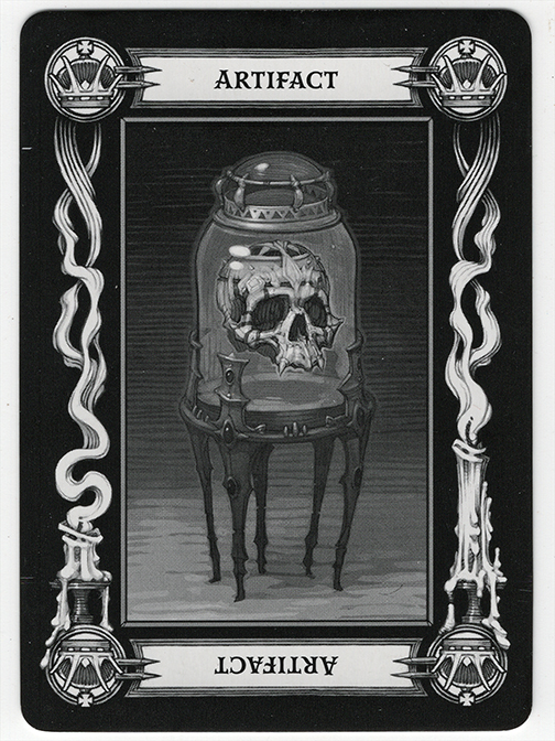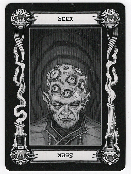 There are a few decks of cards intended for divination via cartomancy occupying nooks and crannies or sitting on bookshelves in the Poison Pie Publishing House. This page highlights a few images from a Tarokka deck from the Ravenloft campaign setting of Dungeons and Dragons. Chuck Lukacs created the art for this deck. This deck was first released in 2016.