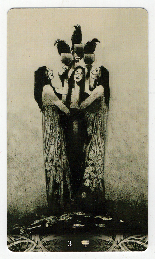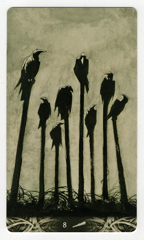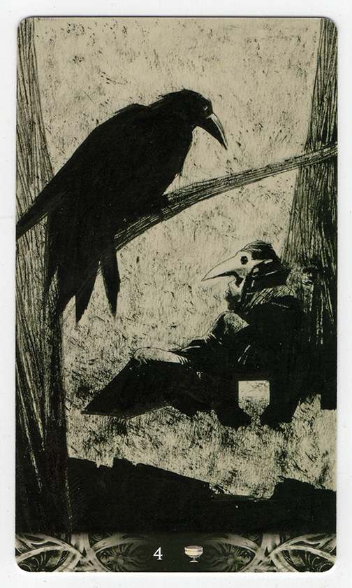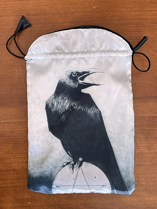 There are a few decks of cards intended for divination via cartomancy occupying nooks and crannies or sitting on bookshelves in the Poison Pie Publishing House. This page highlights a few images from the Murder of Crow Tarot deck. Corrado Roi created the art for this deck. It is unclear when this deck was first released but it was no later than fall, 2020. We purchased our copy in summer, 2024. The publisher is Lo Scarabeo of Torino, Italy, who has published a number of extraordinary Tarot decks.