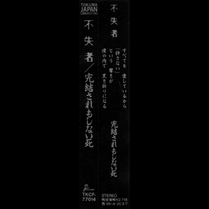 a death never to be complete cd - tokuma japan communications - tkcf 77014 - 1997 - japan keiji haino (guitar, voice) Yasushi Ozawa (bass) Jun Kosugi (drums) fushitsusha recordings, entry 9 |