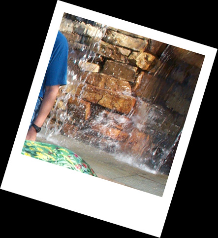 There we found another bear in front of the water fall and surrounded by fountains.
