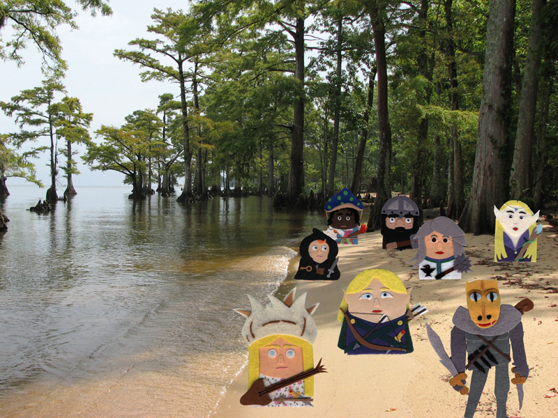 The party awoke in the camp of the mushroom cult. By means unknown to the party, the Mushroomnomicon and the monk had returned them to the coastal swamp where the druid had revived them.