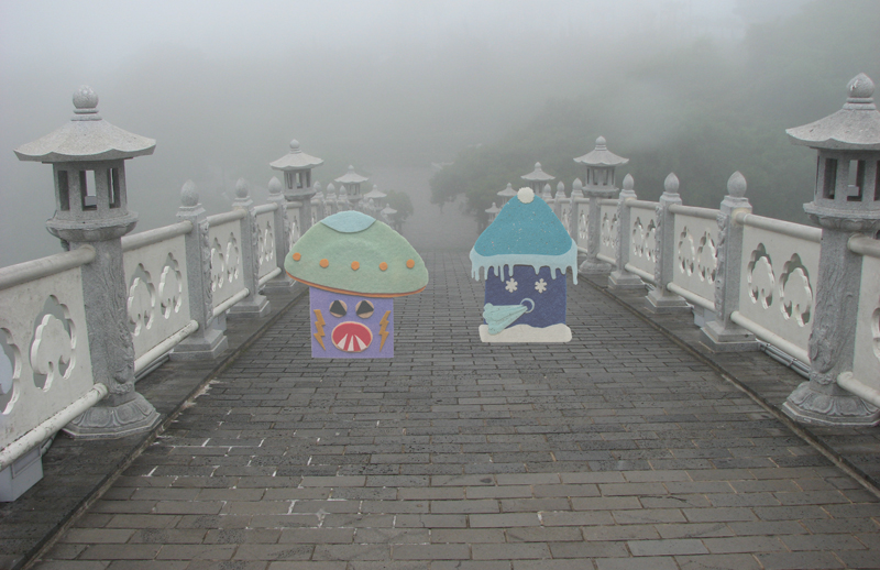 Following its instructions, Moonshroom and Snowshroom climbed an ancient bridge high into the clouds.