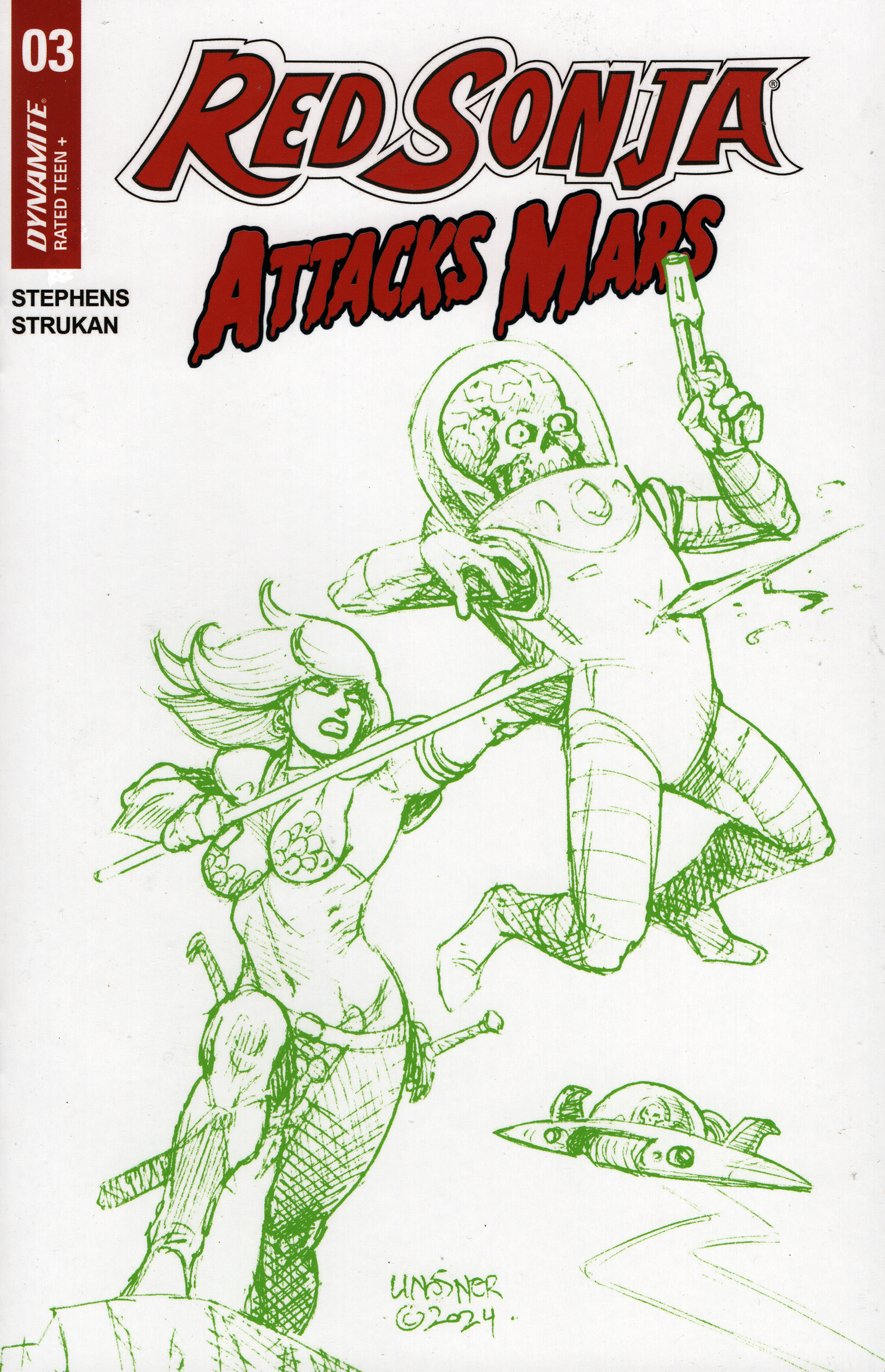 - commentary: In what appears to be a deeply misguided attempt to address the interests of the collecting community, this variant was only available in a blind bag containing two variants randomly selected from a set of twelve possible covers. Red Sonja does not appear in the interior of this book. Of the several variant artworks, blind or otherwise, Red Sonja only appears in this one. We waited for the book to appear on the secondary market where the blind bag was already opened to purchase this variant. There was also a virgin version of the same art, available only as a random selection in a blind bag.