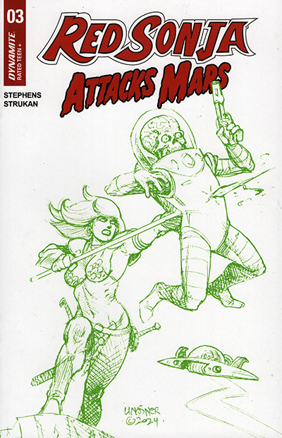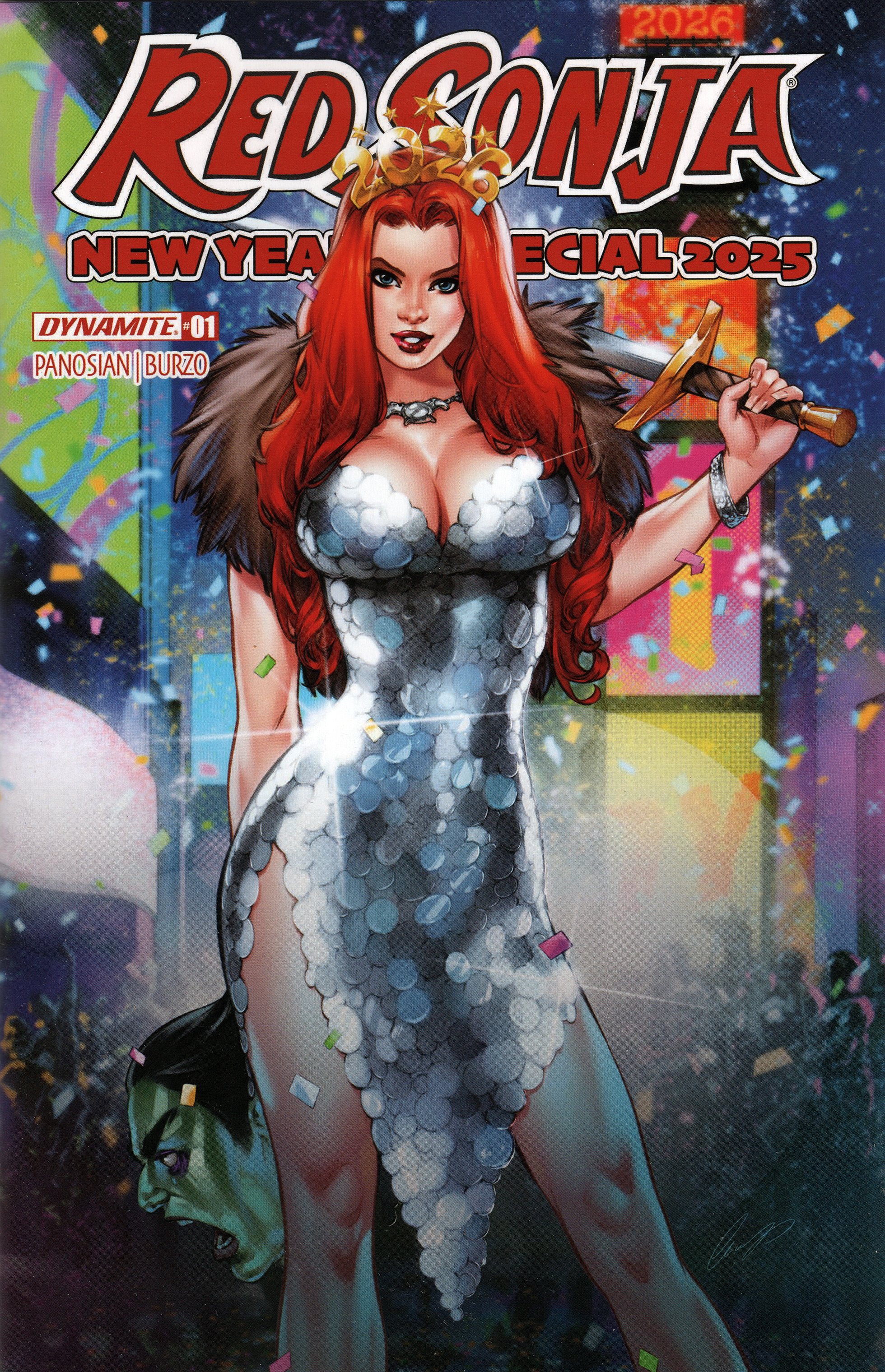 - commentary: As we close out this gallery on 2025, we end with a reminder of the problems with distribution of Red Sonja books that plagued this year. Some of the retailer incentive variants for this issue, like the one above, were released on June 4, 2025. However, the regular A, B and C variants included in this gallery were not released until June 18, 2025. Let's hope these distribution problems end with 2025 and the only problem we have to deal with in the new year is the intentional one of blind bag packaging.