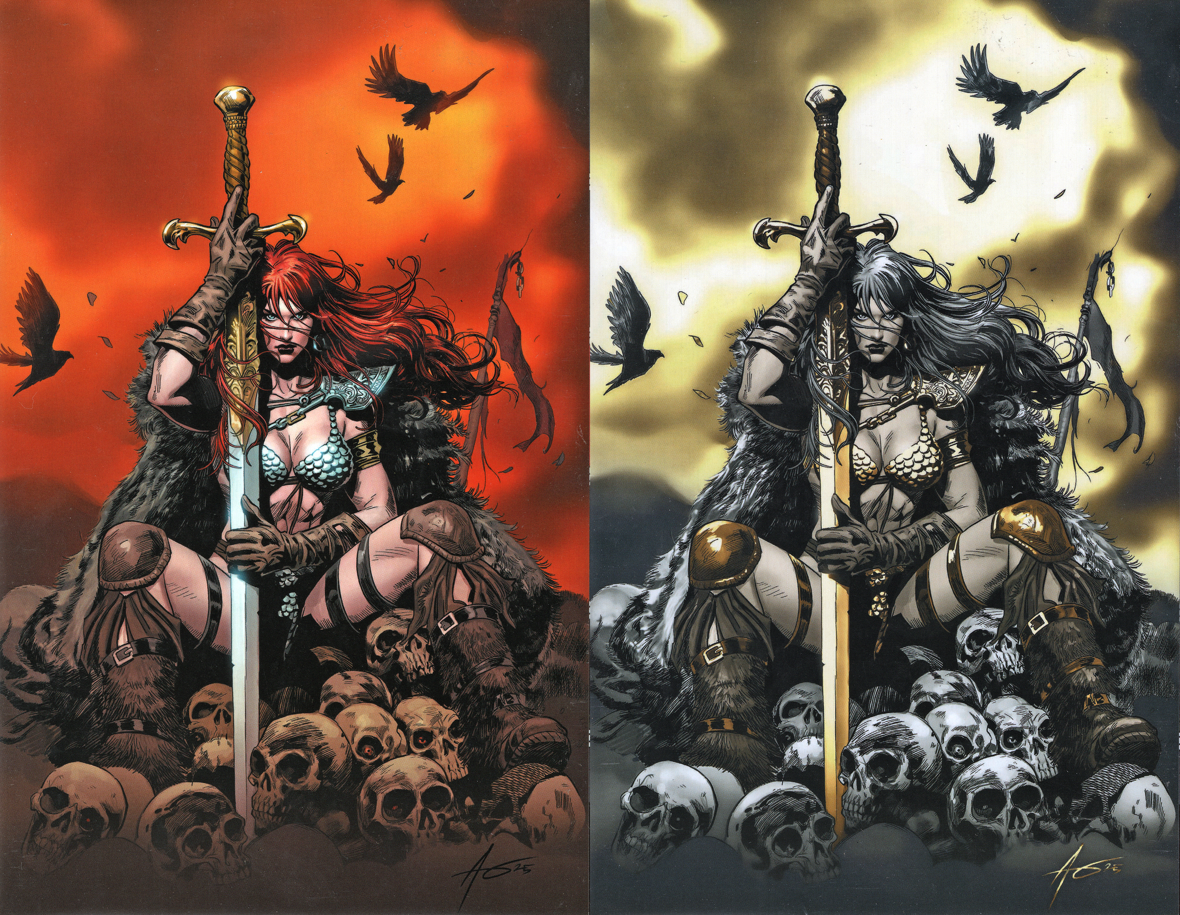 - commentary: To our knowledge, this is the first Red Sonja cover by Kirk "Digiflohw" Ratanasin.