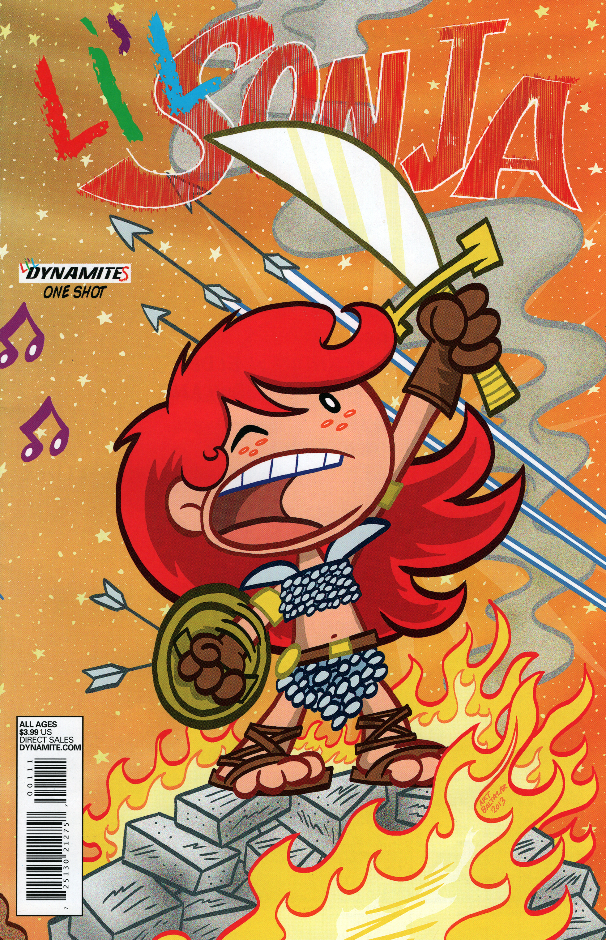- commentary: In January, 2014, Dynamite released five one-shots, each focusing on a different Dynamite license, including Red Sonja, Vampirella, Evil Ernie, the Bionic Man & Woman and Battlestar Galactica. Each issue was written and illustrated by a different team but all the A covers were by Art Baltazar of Tiny Titans (DC Comics) fame and all B variants were drawn by Agnes Garbowska of My Little Pony (IDW) fame. For the curious, this was not the only Red Sonja cover by Art Baltazar, who also drew a variant cover for issue #14 for Amy Chu's interpretation of Red Sonja (2016).