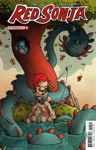 - commentary: This cover by Charles Paul Wilson was a variant for the fifth issue of Amy Chu's Red Sonja series. This cover reminds of us the awesome Polo books by Regis Faller. (Polo lives on a little island, fishes for his dinner and makes friends with beasts of one kind and another.)