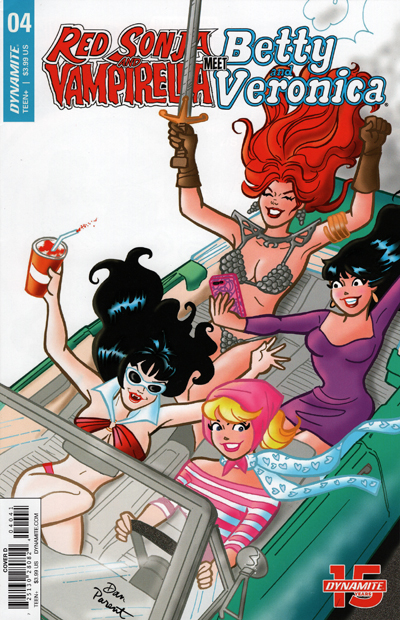 - commentary: For the cross-over series, Red Sonja and Vampirella meet Betty and Veronica, several artists were asked to create covers for each issue. One of these artists was Dan Parent, who is best known for his work with Archie Comics. While his depiction of the the heroines portrays them as adults, there is a carefree style to the art that matches the playful activities in which they are captured.