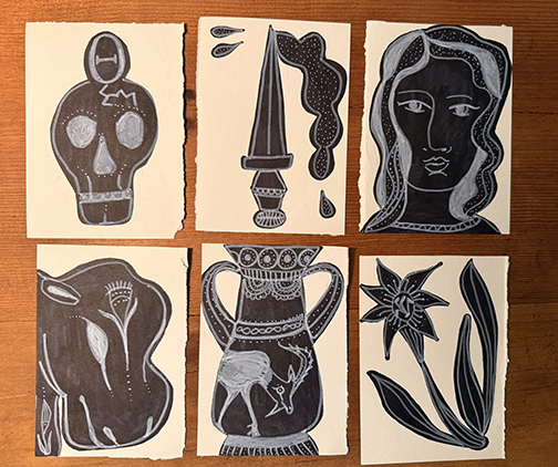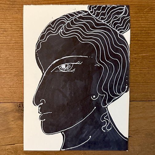 This page features artwork from the street artist, Ms. Julia K. Keffer of Phoenix, Arizona. These works are exploratory illustrations for the musical score, Hebeloma's Psalm of Absolution, which is being serially published on a daily basis in 2025 on the blog of the Poison Pie Publishing House. Hebeloma's Psalm of Absolution recounts the adventure of Melite, one of the maidens offered to the minotaur by King Minos, immediately after she escaped from the labyrinth.