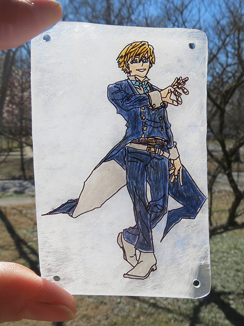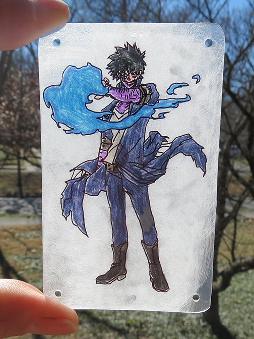The staff of the Poison Pie Publishing House continue their art project in which they render scenes from beloved media in shrinky dink form. One member of the PPPH staff has a friend who is a fan of the manga, My Hero Academia. This gallery features a mobile with four characters. This work was created by Ruth Marie Keffer.