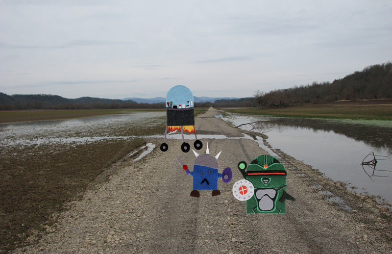 Cyborg Bounty Hunter and his Sidekick landed their craft in the mudflats of the nearby river. The ever-watchful eyes in the forest along the banks reported their arrival to Cthulhushroom.
