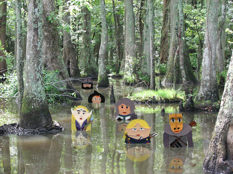 One day, while navigating through a coastal swamp, they heard a faint but beguiling music in the heavy air.