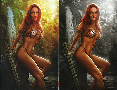 - commentary: To our knowledge, this is the first Red Sonja cover by Lesott. The two versions were labeled "Daylight" and "Dark Battle".